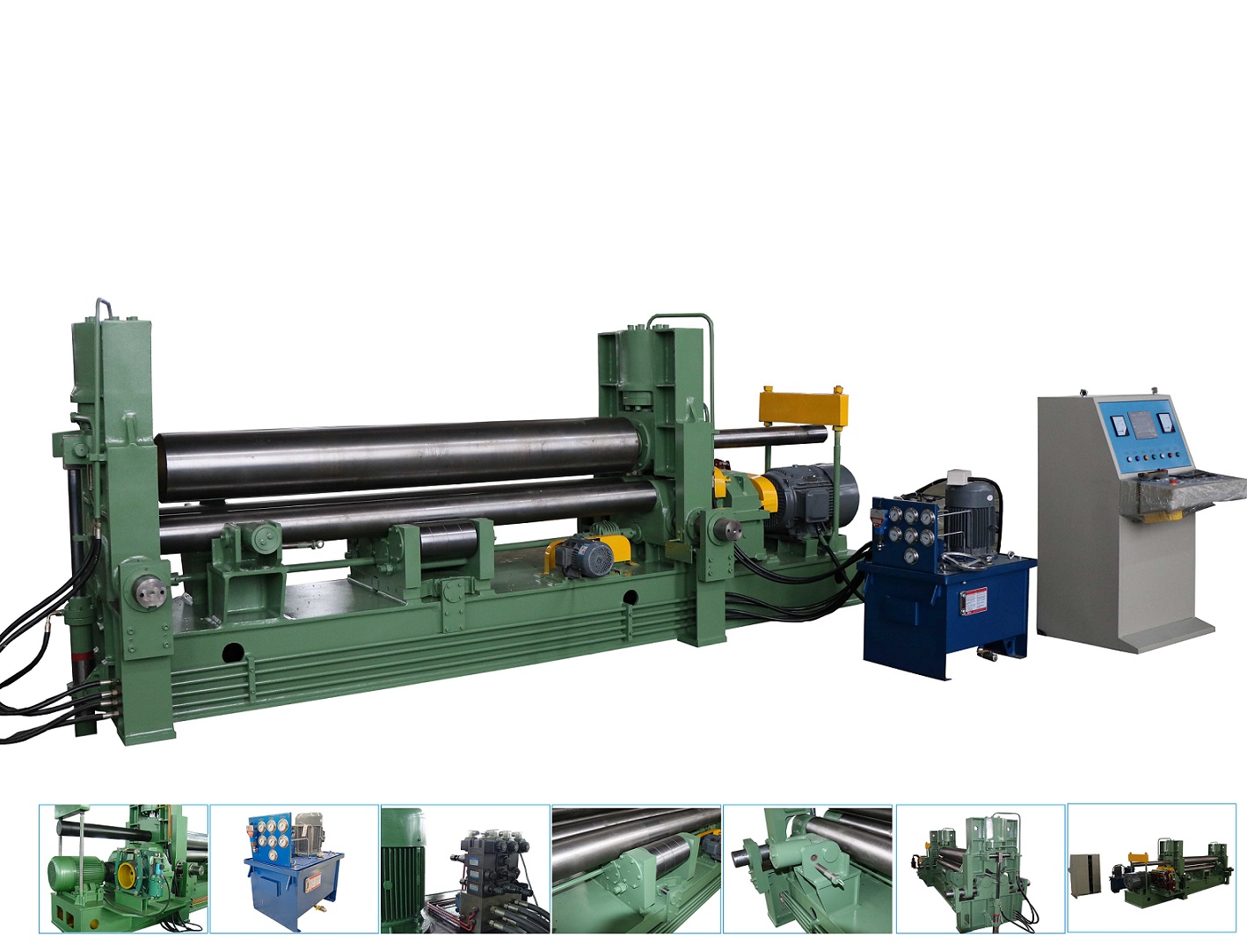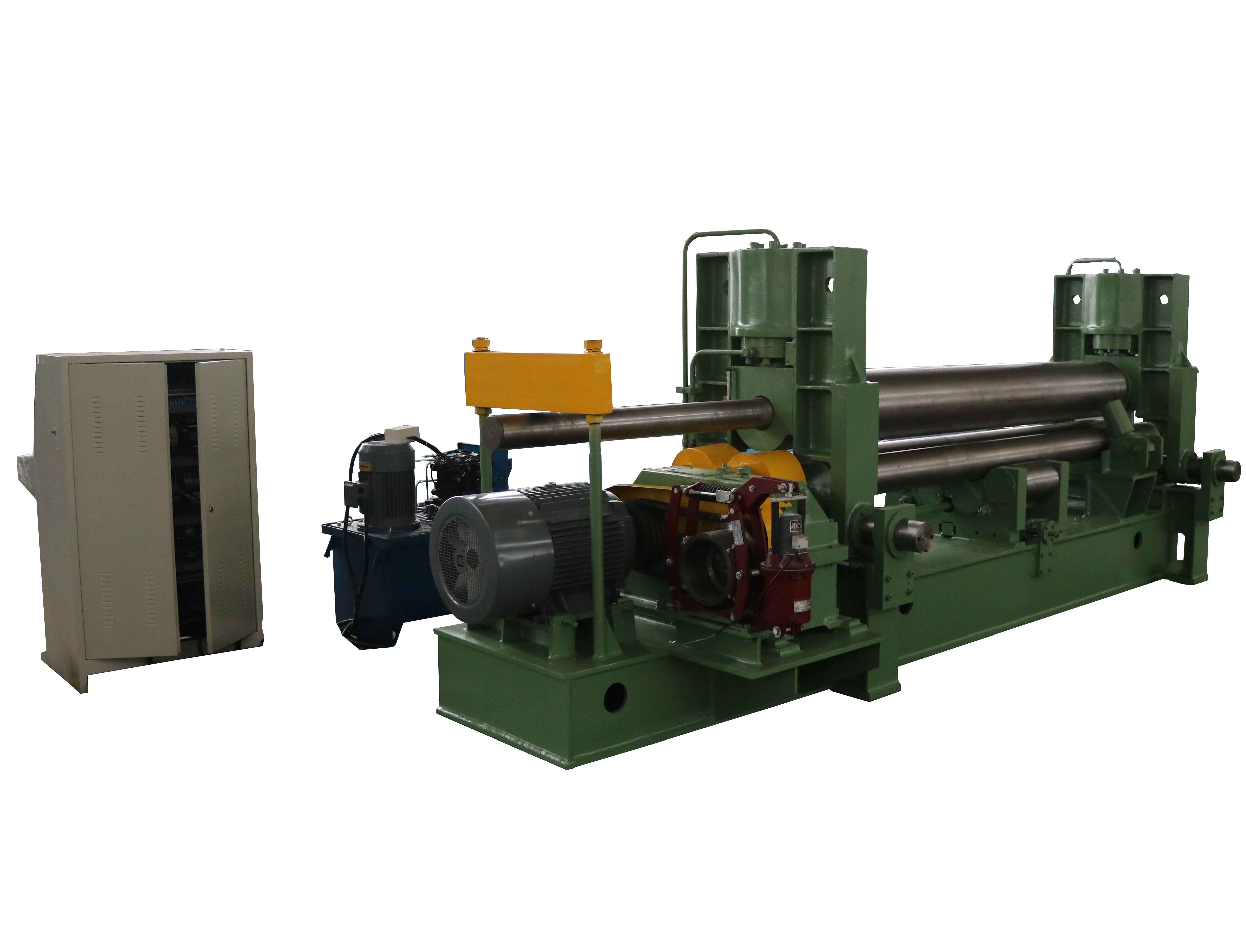 W11SNC萬能式三輥卷板機是一種雙夾板彎板機。 上輥為液壓驅動。 上輥可水平和垂直調節,兩個下輥是固定的。 所有合金鋼輥均經過感應淬火和熱處理。 經過感應淬火處理后,所有的輥都將被研磨和拋光。